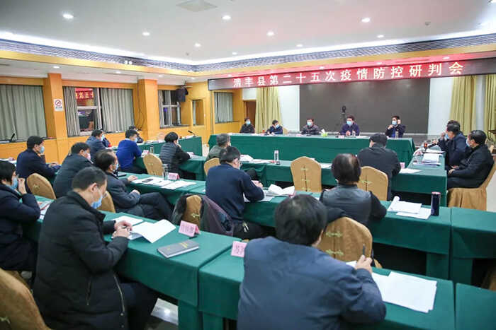 2月15日,清丰县召开第二十五次新冠肺炎疫情防控研判会。县委书记冯向军,县委副书记、县长刘兵,县委副书记潘奇峰,县人大常委会主任杨理宏,县政协主席戚士杰等出席会议。