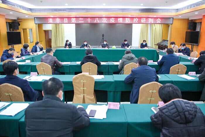 2月18日,清丰县召开新冠肺炎疫情防控第二十八次研判会。县委书记冯向军,县委副书记、县长刘兵,县委副书记潘奇峰,县人大常委会主任杨理宏,县政协主席戚士杰等出席会议。