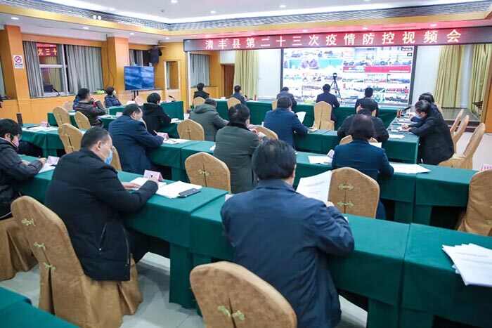 2月18日,清丰县召开新冠肺炎疫情防控第二十三次视频会。冯向军、刘兵、潘奇峰、杨理宏、戚士杰等县领导出席会议,县直有关部门负责人在主会场参加会议,各乡镇有关人员在各分会场参加会议。