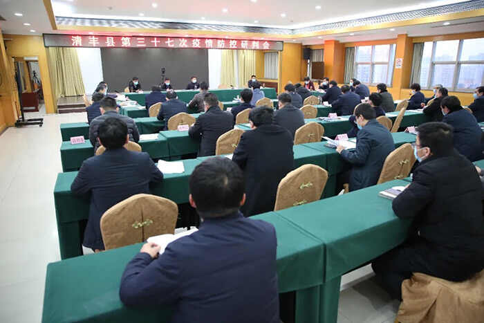 2月28日,清丰县召开新冠肺炎疫情防控第三十七次研判会,县委书记冯向军、县委副书记潘奇峰、县人大常委会主任杨理宏、县政协主席戚士杰等出席会议,县直有关部门负责人参加会议。