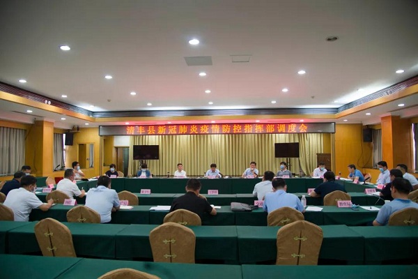 8月8日下午,县委书记曹拥军主持召开清丰县新冠肺炎疫情防控指挥部调度会,听取研究了14个专项小组的工作事项,并对具体工作作了安排部署。县领导赵丹、潘奇峰、戚士杰、岳春青、李彦军、郭晓哲、高现军、赵勋强、李养利、韩晓东、周笃铭、王子宁和指挥部成员单位主要负责同志参加会议。