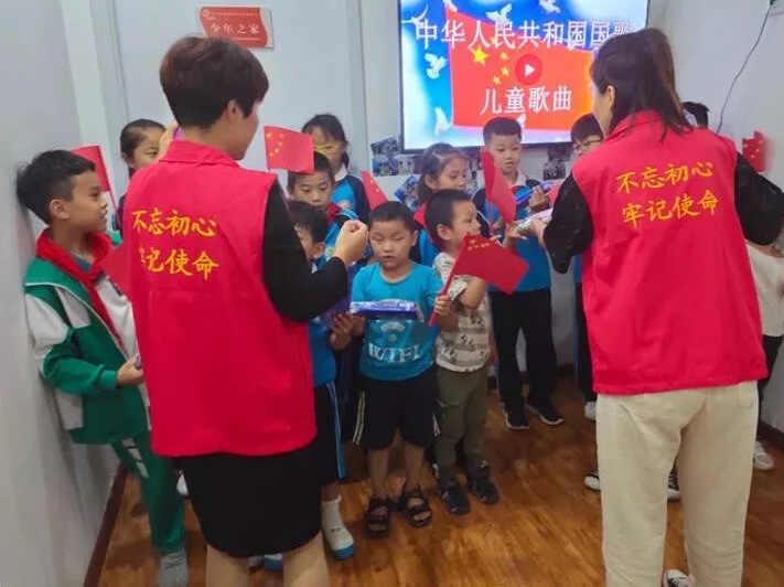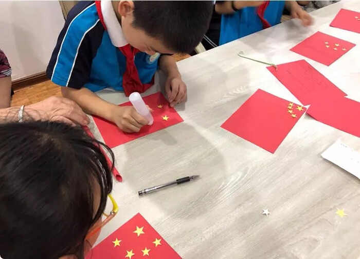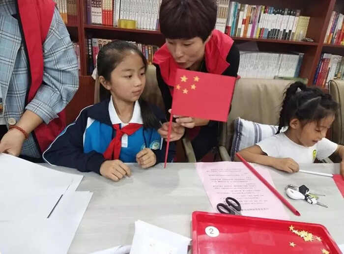 9月23日下午,清华社区共建单位审计局的志愿者与孩子们开展庆祝新中国成立70周年活动。