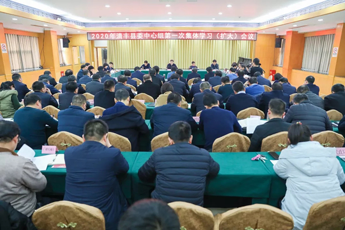 1月13日,清丰县召开2020年县委理论学习中心组第一次集体学习会议,专题学习习近平总书记在“不忘初心 牢记使命”主题教育总结大会上的重要讲话精神。县委书记冯向军、县委副书记潘奇峰、县人大常委会主任杨理宏、县政协主席戚士杰等全体在家县级领导干部参加会议。
