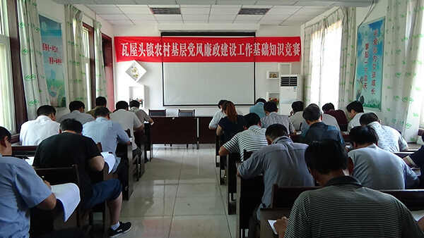 为进一步深入推进农村基层党风廉政建设制度执行年活动,按照县委有关安排,瓦屋头镇于7月18日开展了农村基层党风廉政建设工作基础知识竞赛。镇科级以上干部、镇直各部门负责人及33个行政村党支部书记和村委会主任共计100余人,在镇政府进行了集中考试。
