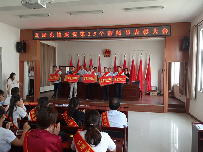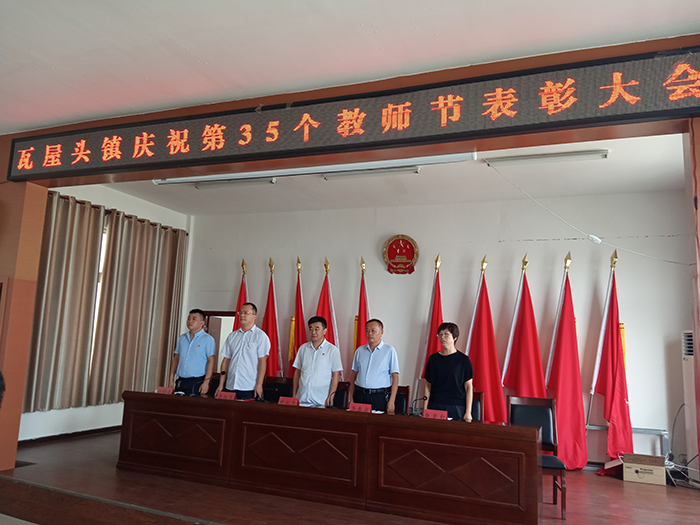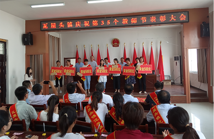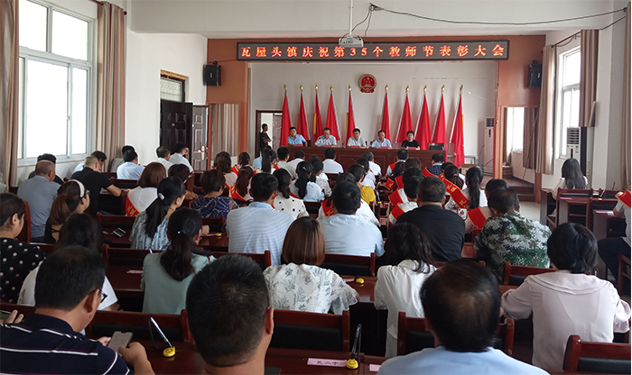 9月9日,瓦屋头镇在镇三楼会议室隆重召开庆祝第35个教师节表彰大会,清丰县教育局副主任科员李春成、办公室主任唐素红同志出席会议,瓦屋头镇领导班子、各行政村支部书记、各中小学校长、受表彰的优秀教师及镇中小学教师代表共计130余人参加大会。