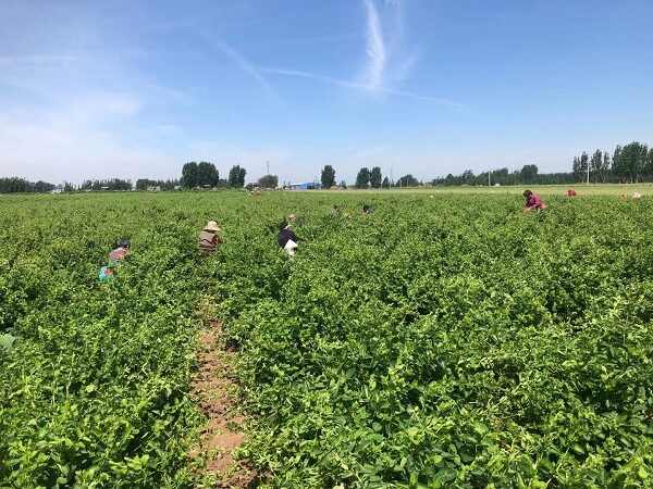 5月20日,在河南省清丰县大流乡堤洼村,这里的300亩金银花进入采摘旺季,田地里红白相间的花朵清香扑鼻,人头涌动,采花工满脸洋溢着丰收的喜悦,一派忙碌的丰收景象,金银花是个宝,采的花既能泡茶,也能入药。五月中旬开始,采摘期前后约2个月,村里的群众纷纷前来采摘。