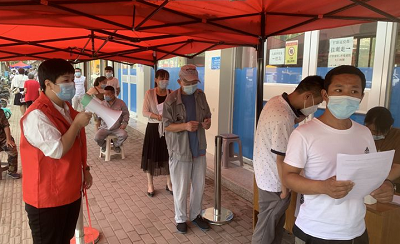 每天凌晨,城关镇防疫站门口竖起一顶顶红色帐篷,镇村党员干部、志愿者,身穿红马甲,戴着红袖章,手拿大喇叭,引导大家有序排起长队,保持一米间隔,依次登记测温接种。为了防暑降温,工作人员还准备了矿泉水、凉茶、驱蚊水、风油精、马扎、扇子等物资,送去了夏日里的一丝清凉。
