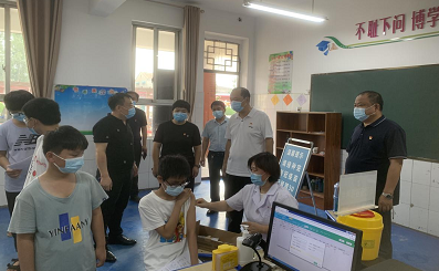 城关镇党委书记马石磊,党委副书记、镇长李欣,党委副书记李少恒,副镇长牛墨羽到北关小学了解接种情况,耐心协调解决家长和孩子们的困难,并送去防暑降温物资,尽力为大家营造良好的接种环境和条件。