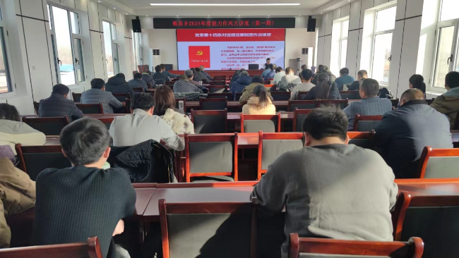 为进一步打造政治过硬、能力突出、务实清廉的干部队伍,1月25日,纸房乡2024年度第1期能力作风提升大讲堂在乡政法会议室开讲,邀请县委巡察办督察督办室负责人进行授课,乡机关全体共计60余人参加。