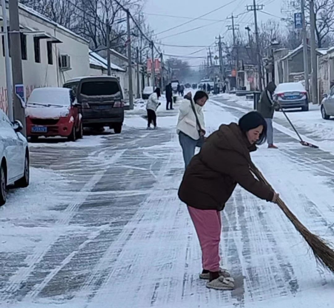 广大党员干部、志愿者严格按照职责分工和应急预案要求,利用扫帚、雪铲、大型铲车等工具对全乡主干道路及交叉路口的积雪进行全面铲除,清理出一条条“安全便民通道”,并在重点、危险路段设置警示标志。各村干部、网格员深入低收入、五保户等重点人群家庭,将扫雪服务送上门,排查房屋安全隐患,组织进行屋顶积雪清理,确保危房不住人,隐患及时消除。