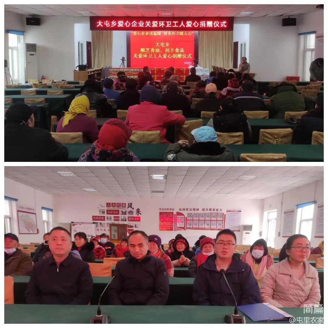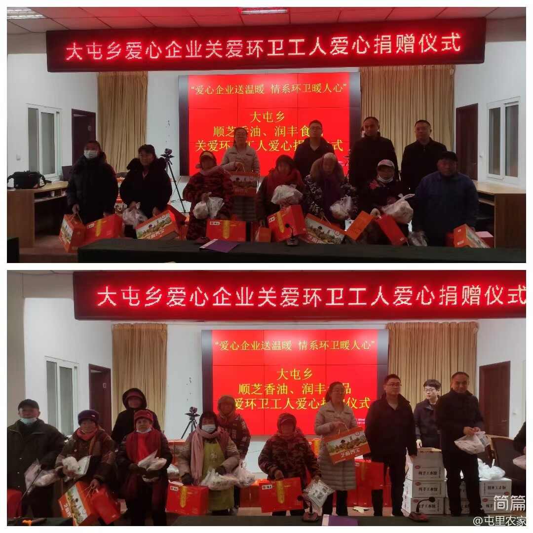“愿你三冬暖、愿你春不寒”,2月4日,新春佳节来临之际,清丰县大屯乡人民政府联合乡域内爱心企业顺芝香油和润丰食品开展“爱心企业送温暖 情系环卫暖人心”活动,为一线环卫工人送上价值2万余元的香油、芝麻酱、水饺等新春“大礼包”,乡党委书记武顺杰,乡党委副书记、乡长朱利蕊,以及两家爱心企业负责人出席慰问活动,向30余名奋战在一线的环卫工人送去关怀,并致以节日的祝福。