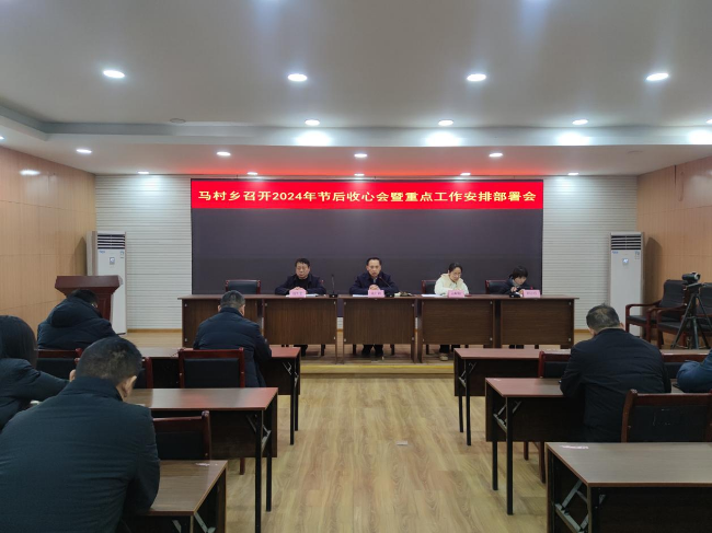 一年春作首,万事行为先。为在节后迅速收心聚神,切实做到人员归位、思想归位、工作归位,促使全体干部职工迅速调整好工作状态,将节日气氛转化成工作热情,更好地找准工作切入点,确保各项工作顺利推进,为全年工作开好局、起好步,2月20日,马村乡组织召开2024年节后收心会暨重点工作安排部署会,乡机关全体干部职工、各行政村支部书记共计100余人参加会议。