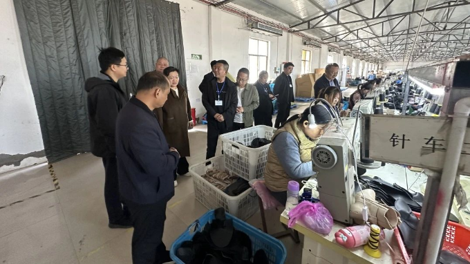 在马村乡南街村德隆鞋业,认真听取企业发展历程介绍,实地参观裁断车间、针车车间、物流仓库,对德隆鞋业设计、生产、销售一体化运作模式有了详细了解。