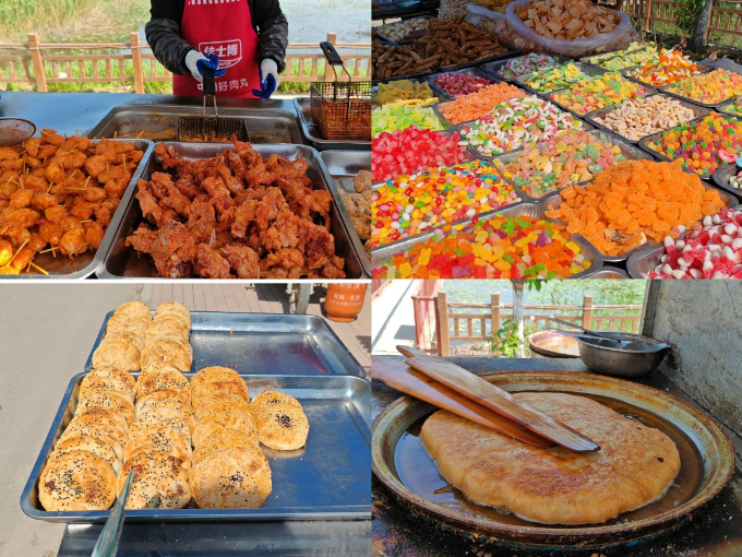 小朋友最爱的七彩糖、咬一口酥脆掉渣的芝麻烧饼、香喷喷的炸串壮馍、凉爽的冰淇淋,丰富多样的美食也是大排长龙。