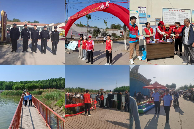 本次活动,镇政府精心组织,周密安排,全力保障群众的生命财产安全。车辆引导组负责入村口及停车区域和沿途车辆的秩序维持;安全保障组负责同心湖、莲花湖周边安全维护;美食、娱乐设施组具体负责摊位附近的秩序;镇派出所和执法大队负责治安,全天巡逻;镇司法所对现场群众普及法律知识。