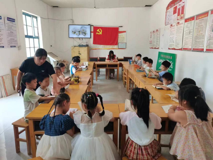 活动中,在党员和大学生志愿者们的指导下,孩子们兴致勃勃地分享最近正在读的一本好书,从历史到政治,从天文到地理,从科学到生活……。农家书屋不仅给孩子们提供了假日休闲的好去处,更搭建了交流分享、积累知识的平台。