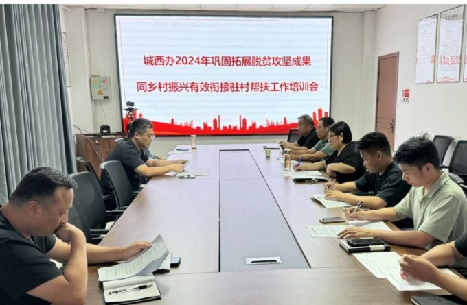 8月12日,清丰县城西街道组织召开2024年巩固拓展脱贫攻坚成果同乡村振兴有效衔接驻村帮扶工作培训会,城西街道党工委有关负责同志、包村干部、驻村干部参加。