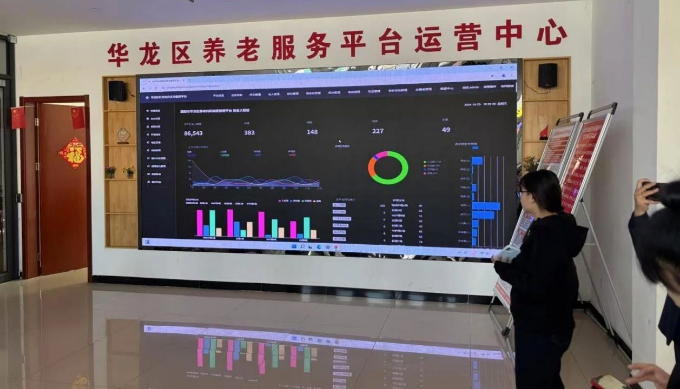在玉兰社区、乙烯小区重点参观了“智慧养老服务系统”对老人实时监测,如有突发情况,运用“一键呼叫”功能,工作人员可及时赶到现场,帮助老人及时解决问题。