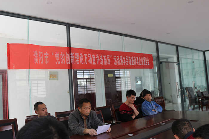 为深入学习宣传贯彻习近平新时代中国特色社会主义思想和党的十九大精神,扎实推动习近平生态文明思想深入人心, 4月26日下午,县环保局宣讲团到清丰海盛家具有限公司开展濮阳市“党的创新理论万场宣讲进基层”活动清丰县海盛家具企业报告会。宣讲团副团长李雅萌以《深入学习贯彻习近平生态文明思想 建设生态宜居清丰》为题作宣讲报告。海盛家具有限公司环保负责人、一线职工,共计19人参加报告会。