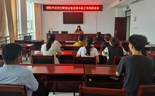 为学习贯彻习近平新时代中国特色社会主义思想,做好新形势下党的创新理论宣传工作,6月17日下午,县工信局举办濮阳市“党的创新理论宣讲”报告会。经济运行股付欣芳同志对《河南省贯彻落实稳住经济一揽子政策措施实施方案》进行了详细解读,参加报告会的同志纷纷表示,要认真学习研究、用好惠企政策,助力企业快速健康发展。