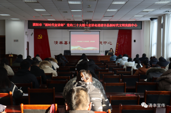为深入学习贯彻落实党的二十大精神,促进习近平新时代中国特色社会主义思想主题教育走深走实,近日,“党的二十大精神”宣讲报告会在县新时代文明实践中心召开。本期宣讲特邀濮阳市“新时代宣讲师”、清丰县委党校讲师谭晓越主讲,全县省、市、县级文明单位90余名党员干部参加宣讲报告会。