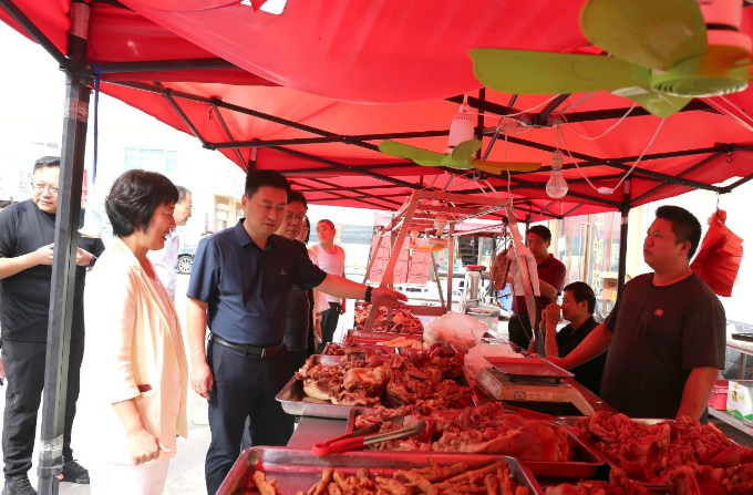 在万邦·濮阳国际农产品批发市场,先后到冷鲜肉、熟食、海鲜等区域,实地察看市场环境、菜品品类、消防安全等情况,与市场负责人、商户深入交流,详细询问价格、质量和销售情况,并听取相关介绍。他强调,要完善市场功能配套,稳住市民“菜篮子”、守住农民“钱袋子”,更好履行社会责任;要精心调配货源、丰富商品种类,保障食品安全、稳住商品价格,更好满足群众多样化、品质化消费需求。