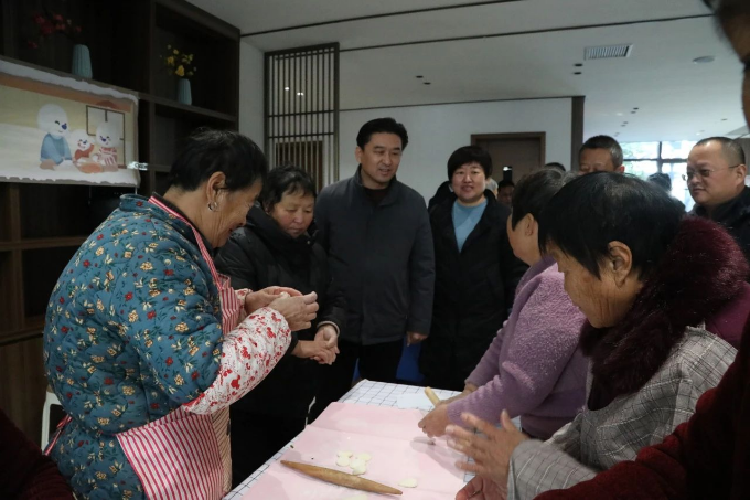 李养利一行深入五保户家中,查看居住环境,关切询问生活近况、生活需求,送去冬至关怀和温暖;实地查看党群服务中心,与干部、群众亲切交谈,了解饺子宴筹备、集体经济发展、人居环境整治等情况,倾听意见建议;走进日间照料中心,查看运营管理、环境卫生等情况,为老人送上热气腾腾的饺子,与老人亲切交流,询问健康状况,叮嘱老人注意保重身体,多提意见建议;来到学校食堂,详细查看师生饮食情况,叮嘱他们注意防寒、及时添衣、增强体质。
