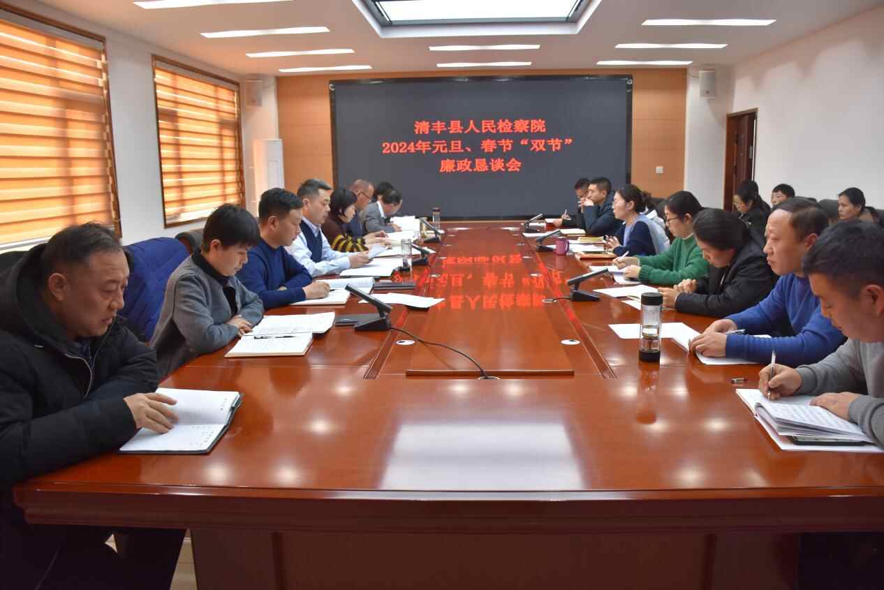元旦、春节将至,为切实加强节日期间党风廉政建设,深入贯彻落实中央八项规定精神,12月28日,清丰县人民检察院召开元旦、春节双节廉政恳谈会,中层以上干警参加了该会议。