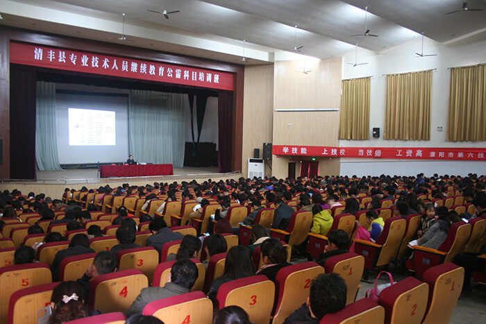 3月21日上午,由濮阳市第六技工学校承办的全县专业技术人员继续教育公需科目技能培训提升班在清丰县电影院开班。此次培训分九期,每期2天,共7900多名专业技术人员参加培训。