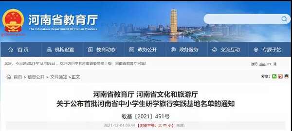 按照《河南省教育厅 河南省文化和旅游厅关于开展首批河南省中小学生研学旅行实践基地推荐工作的通知》(教基〔2021〕198号)的工作安排,省教育厅、省文化和旅游厅组织专家对推荐的申报单位进行了初评、实地抽查评估,认定清丰县冀鲁豫边区革命根据地旧址纪念馆等32家单位为首批河南省中小学研学旅行实践基地。