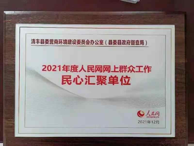 清丰县县委县政府督查局荣获“2021年度人民网网上群众工作民心汇聚单位”