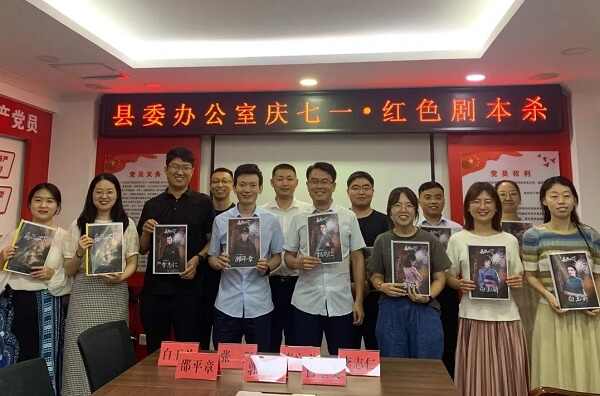 6月29日下午,清丰县委办在七楼会议室举办“庆七一·红色剧本杀”活动,选取了《兵临城下》剧本,随着剧幕的拉开,大家“穿越”到硝烟弥漫的1937年,化身热血青年,为了民族存亡抛头颅、洒热血,虽立场不同、角色不同,但他们最后都作出了与无数革命先烈一样的选择——全体签下请战书,留下一封家书。在近三个小时的演绎中,大家感受到国之大爱,感受到亲情温暖,坚定理想信念争做新时代忠孝党办人。