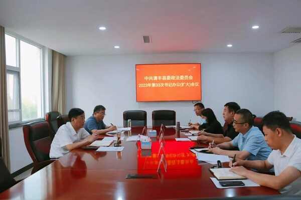 9月18日下午,县委副书记苏本长主持召开中共清丰县委政法委员会2023年第三十三次书记办公(扩大)会议。县委政法委、县纪委监委派驻县委政法委纪检监察组等相关负责同志参加。
