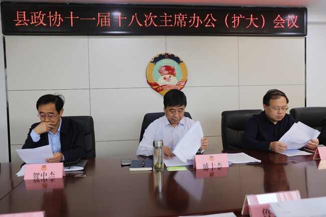 10月9日上午,县政协在综合楼五楼会议室召开十一届十八次主席办公(扩大)会议。县政协党组书记、主席戚士杰主持会议并讲话。县政协领导李宇峰、贺中杰、李培民、张玉华、谭自安出席会议。机关各委室负责同志、机关全体干部职工列席会议。