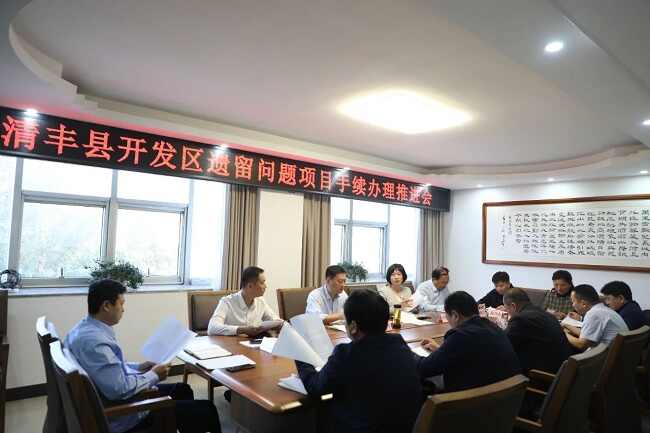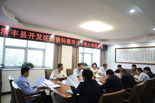 10月25日,县委副书记、县长赵丹召开清丰县开发区遗留问题项目手续办理推进会,听取县开发区关于企业不动产证办理情况的汇报,对下步工作进行安排部署。县委常委、常务副县长程春艳,副县长弓晓飞,县开发区党工委书记师敬川,县政府办、督查局、自然资源局、住建局等单位有关负责同志参加。
