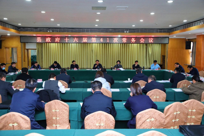 12月11日,县委副书记、县长赵丹主持召开县政府十六届第41次常务会议,县领导程春艳、弓晓飞、王子宁、董兆宇出席会议,县领导王克献、李培民及有关单位负责人列席会议。
