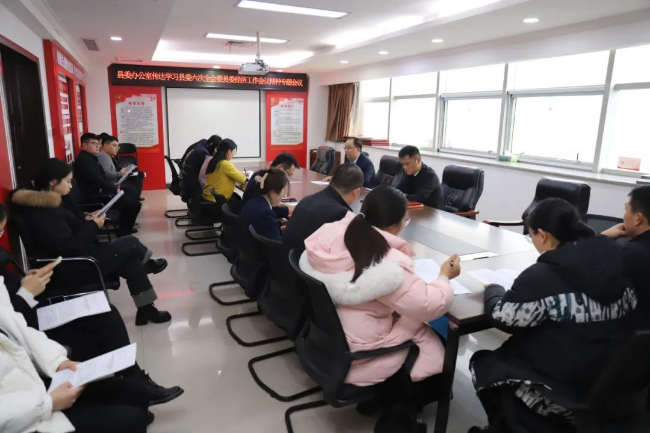 12月29日下午,县委办公室召开专题会议,传达学习县委十四届六次全会暨县委经济工作会议精神,全体党员干部参加。