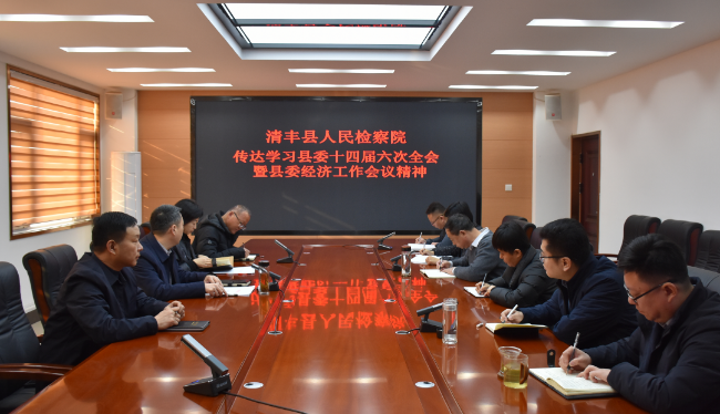 1月2日,清丰县检察院召开党组会议,传达学习县委十四届六次全会暨县委经济工作会议精神。院党组书记、检察长杨斌主持会议并讲话。院党组成员、专职委员参加会议。