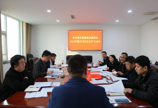 会议传达学习了习近平总书记对政法工作的重要指示精神以及中央政法工作会议精神,集中学习了《维护稳定责任制规定》,并对《中共清丰县委政法委员会书记办公会议事决策规则》(征求意见稿)起草,全县坚持和发展新时代“枫桥经验”深化“三零”创建工作会议筹备,2023年度优秀网格员、矛调员评选,全县政法系统“十佳政法干警”评选,清丰县政法系统新春大拜年活动筹备等议题进行了研究。