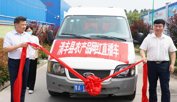 7月2日,清丰县在马庄桥镇赵家村电商服务中心举行“农产品网红直播车”启动仪式,助推我县“食用菌、红薯”主导产业等农特产品上行,全面打通农产品销售“最后一公里”。县委副书记、县长刘兵,副县长韩晓东,各乡镇乡镇长和县直有关部门负责人参加活动。