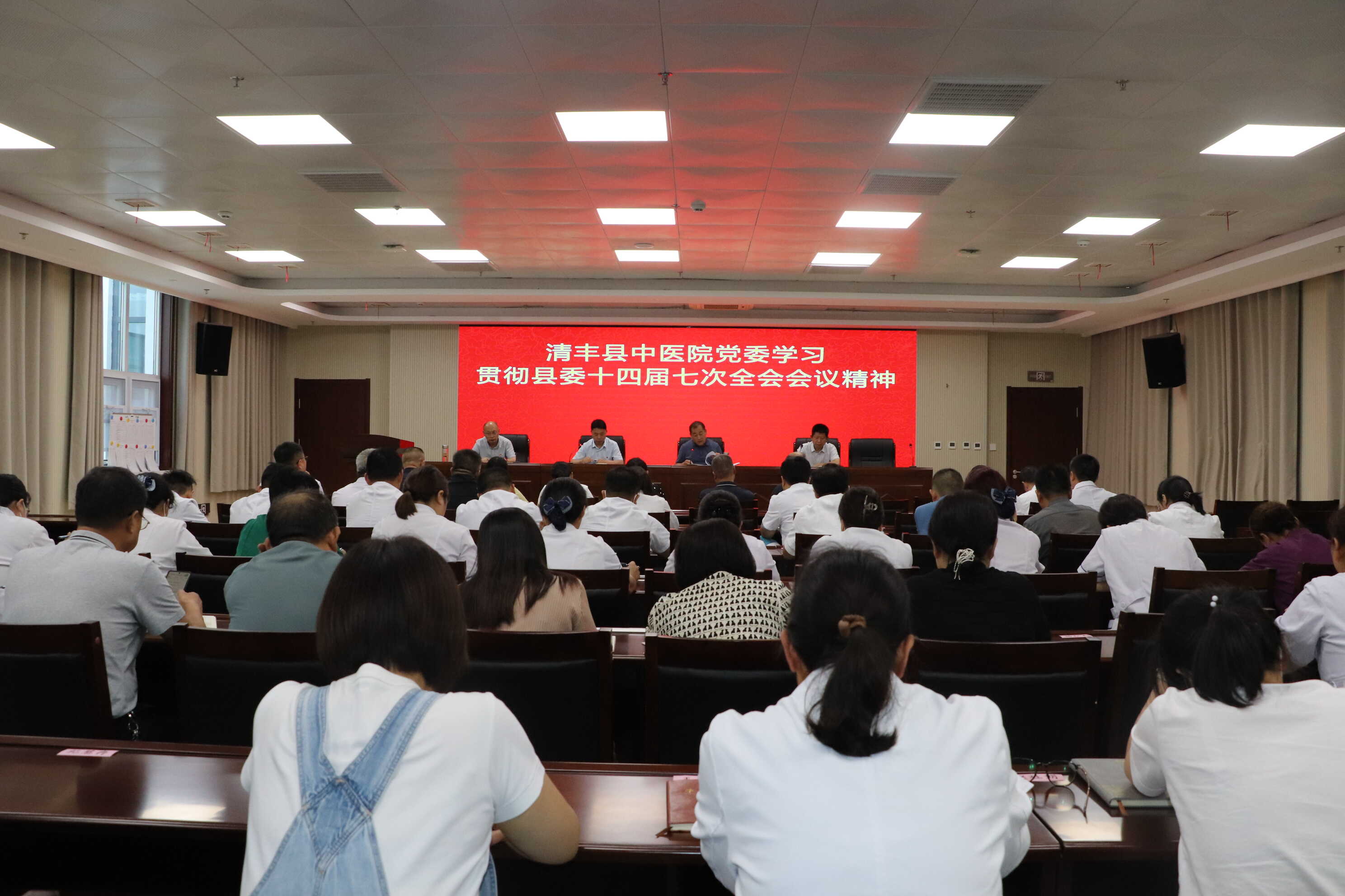 9月5日下午,清丰县中医院召开全体党员干部会议,迅速传达学习县委十四届七次全会会议精神,会议由党委书记、院长孙立群主持。会议传达了县委书记高尚功在县委十四届七次全会上的讲话。