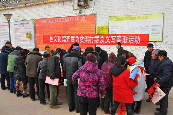 1月18日,清丰县"红色文艺轻骑兵”新春走基层——2018清丰县“文化进万家”义写春联活动在古城乡齐家村拉开帷幕。活动现场气氛亲切而温暖,十多位著名书法家现场挥毫泼墨,一幅幅苍劲有力、喜庆吉祥的春联映入眼帘,引得周围群众驻足观看。该活动为期20天,届时深入各个乡镇,将写满新春祝福的春联送到千家万户。