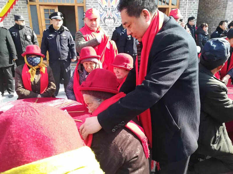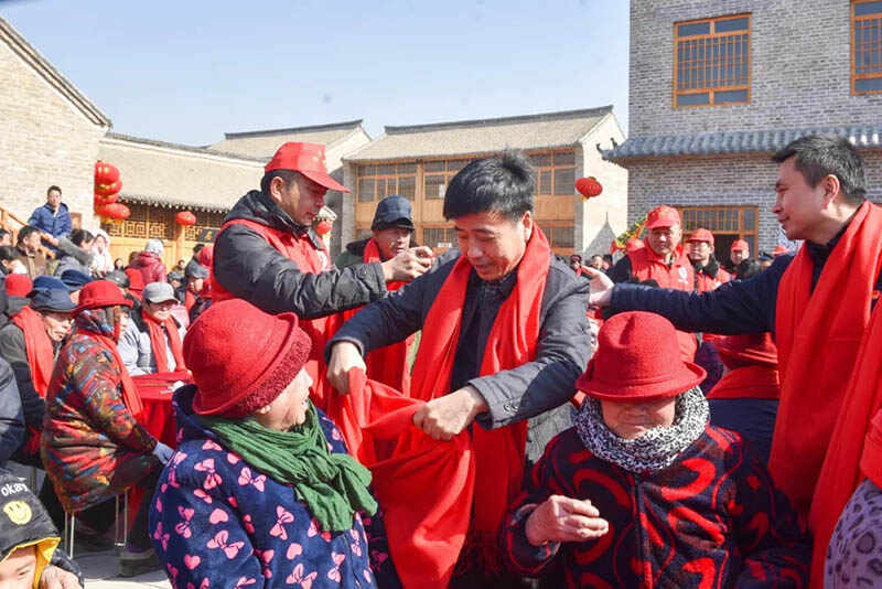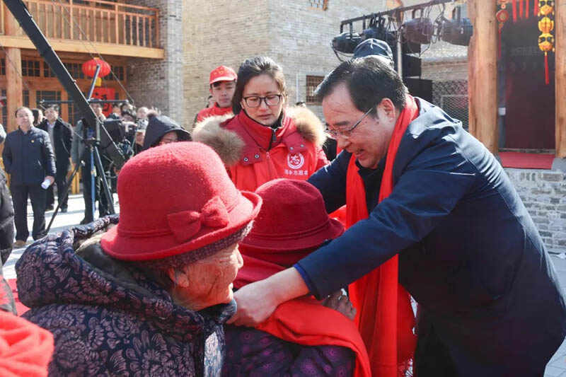 县委书记冯向军为老人们送去新年礼物并祝福她们健康长寿。