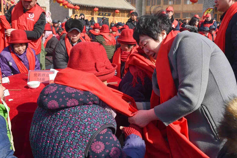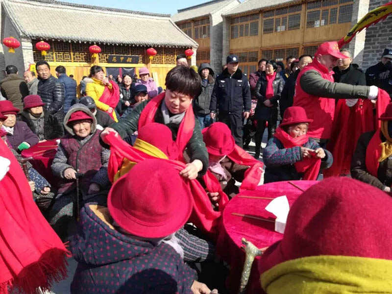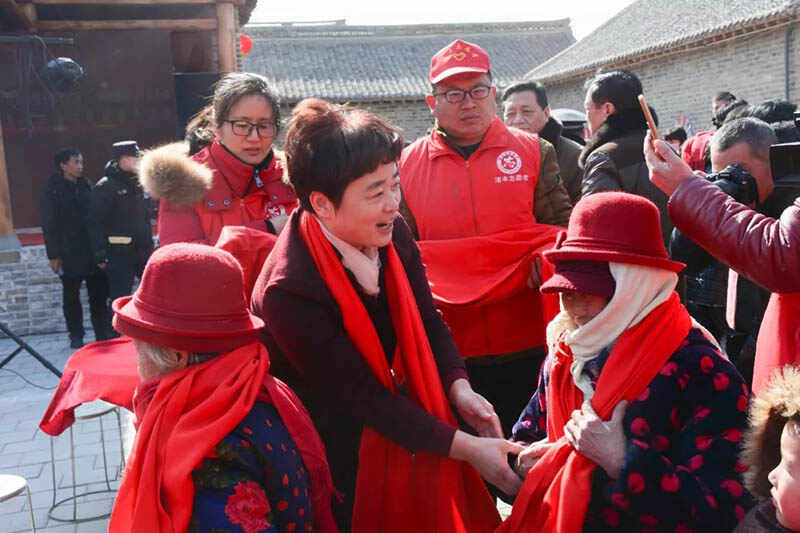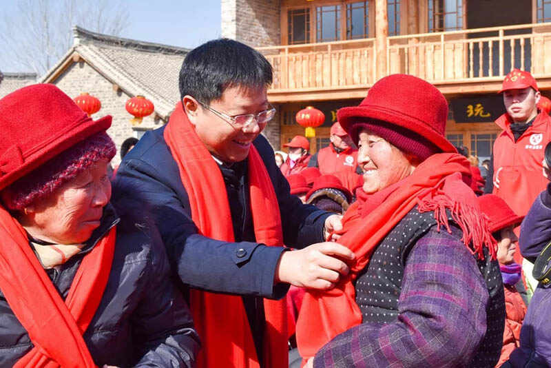 市委常委、宣传部长张锦印为老人们戴上围巾等新年礼物并为她们送去祝福。