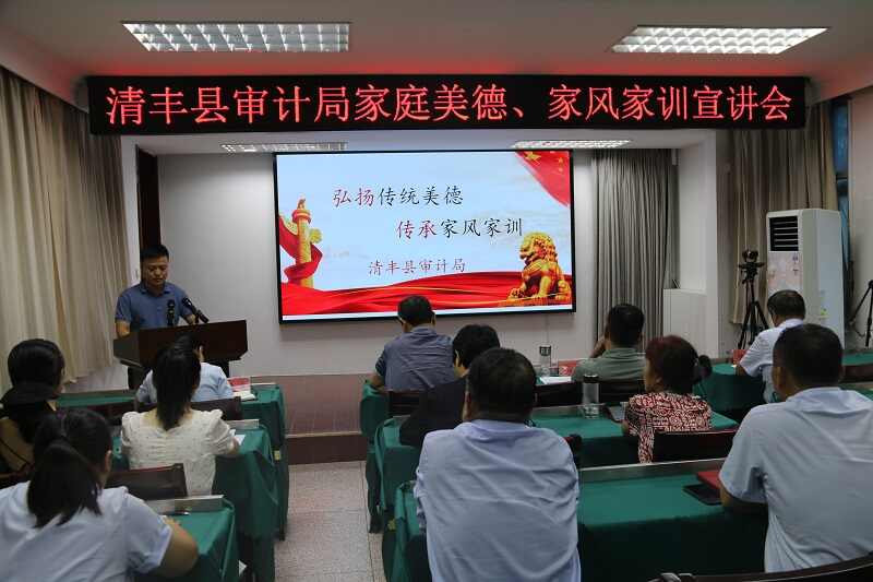 二是扬美德,开展家风家训宣讲活动。为更好地营造崇尚家庭美德的良好氛围,培养清廉、文明家风,组织开展家风家训宣讲活动,5名审计干部真情流露,讲述廉洁家风故事、诵读经典家训家规,结合自身实际,分享各自家庭治家育人的经验与智慧,引导全体审计干部注重家风家训建设,以实际行动树立好家风、传承好家训,争做文明、和谐、健康、清廉家庭的典范。