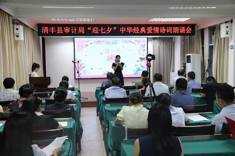 一是传经典,举办爱情诗词朗诵活动。为进一步引导审计干部感受中华民族优秀传统文化,组织11名审计干部围绕“爱情忠贞、家庭幸福”主题,诵读《致橡树》《鹊桥仙》《蒹葭》等中华经典爱情诗词,参与朗诵的审计干部个个精神饱满、感情充沛,用充满深情的吟诵,将高尚的情感和健康的生活理念传递给全体审计干部,促使全体审计干部在优美诗词中充分感受浪漫爱情,共建美好家园。