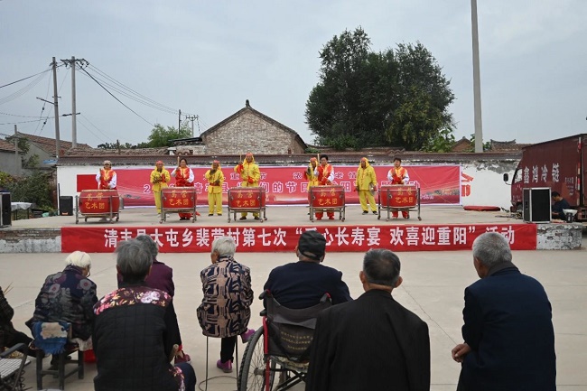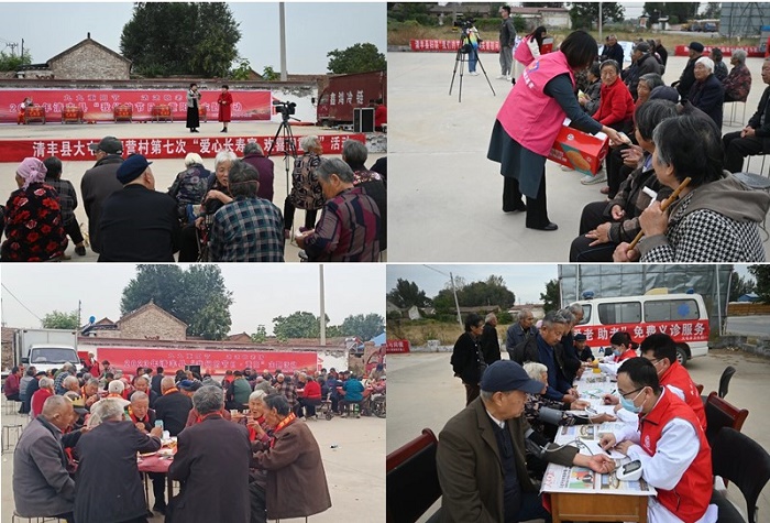 活动现场形式多样,爱心满满,其乐融融:文艺志愿者们为老人献上精彩演出,暖爱巾帼志愿者细心地为老人修剪着头发,大屯乡卫生院的医护志愿者携带着各种医疗器械设备,为老人量血压、测血糖,叮嘱着注意事项,县妇联志愿者为每位老人送上爱心面包等慰问品,最后带着浓浓“敬老情”的“长寿宴”摆起来,80余位70岁以上的老人享用起美味的饭菜和“长寿面”。