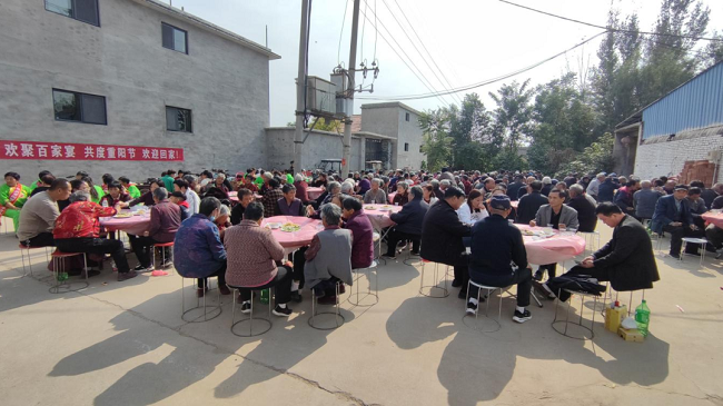 演出结束后,全村65岁以上的老人围坐在一起,一道道精心制作的菜肴被端上“百家宴”,大家边品尝美食、边唠家常,有说有笑、其乐融融。
