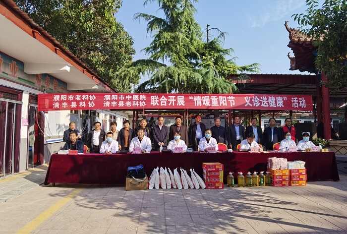 秋风送爽,丹桂飘香。10月23日,濮阳市老科协、濮阳市中医院联合清丰县科协、清丰县老科协在清丰县巩营乡敬老院举办“情暖重阳节 义诊送健康”活动。市政协原副主席、市老科协会长张怀玺,市老科协常务副会长袁泽义,市老科协副会长兼卫健分会会长李忠信,市老科协秘书长林加峰,市老科协卫健分会秘书长谢启锋,县委副书记苏本长,副县长王洪勋,县政协原副主席、县老科协主席赵怀欣等40余人出席活动,为敬老院的老年人送上了节日的祝福和生活物资以及科普书籍等慰问品。