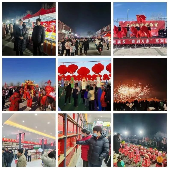 双庙乡举办形式多样的民俗文化活动,为群众带来唱红歌、赏民俗、猜灯谜、打铁花等特色节目,让群众欢欢喜喜庆祝元宵佳节。单拐景区迎来游客高峰,演出现场、红色文创超市、沿街商铺人员爆满、热闹非凡。